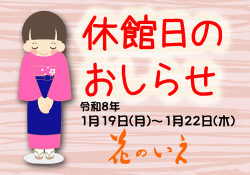 休館日のおしらせ(令和8年1月19日〜1月22日まで休館いたします)