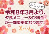 令和8年3月より、一部夕食メニューと料金が変わります。
