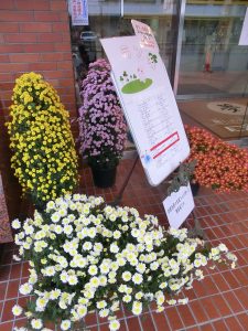 丹原高校[懸崖菊] (2016年11月26日) こんにちは、にぎたつ会館です。 先日より丹原高校の生徒さんが作った懸崖菊(けんがいぎく)を飾っています。 ランチ看板の隣に飾らせていただいてます(*´ω`*) 枯らせないように気を付けています。