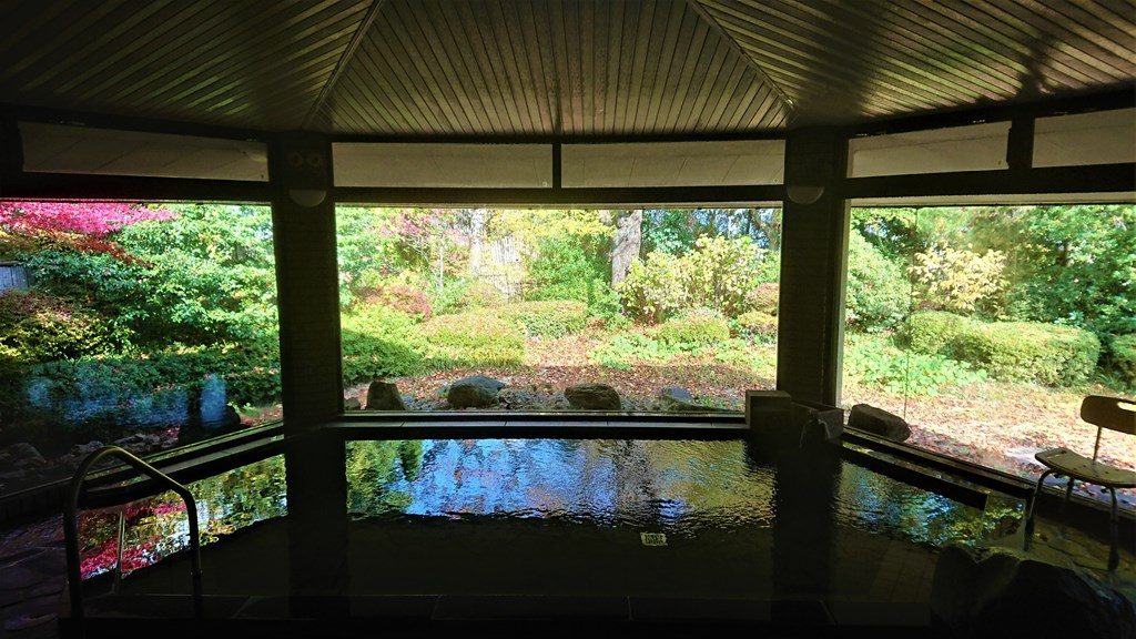 庭園の葉っぱはもうほとんど落ちてしまい、浴場周辺のもみじだけが綺麗に色づいている状況です。
