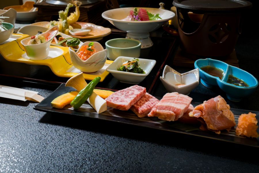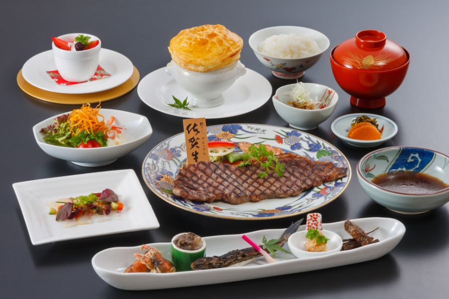 夕食は、とろけるような美味しさの佐賀牛を使用し、佐賀の味覚をお楽しみいただけるお料理をご用意しております。