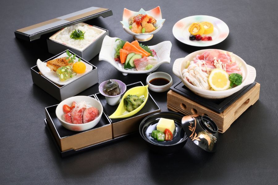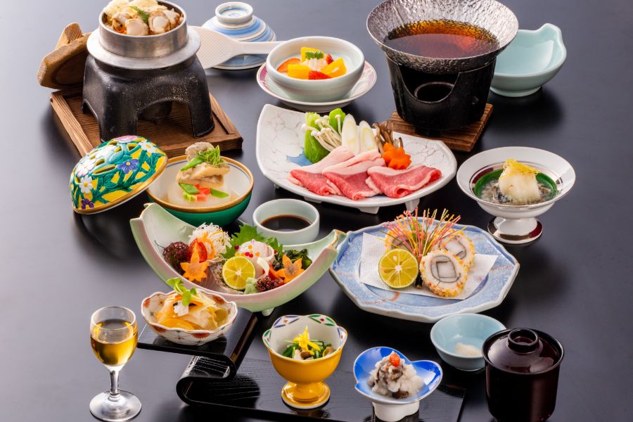 季節の食材をふんだんに使用し、舌で季節を感じられる旬の会席をご用意いたしました。旬の味わいと温泉や客室からのぞむ桜島!鹿児島をご堪能ください。