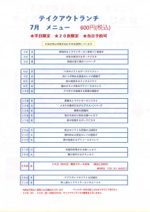 テイクアウトランチの販売期間延長について (2020年06月23日) ご好評につきテイクアウトランチの販売期間を7月31日(金)まで延長いたします。 当日予約も可能ですのでお気軽にお問い合わせください。 ご不明点等ございましたら、お気軽にお問合せ下さいませ。 TEL:086-232-0511